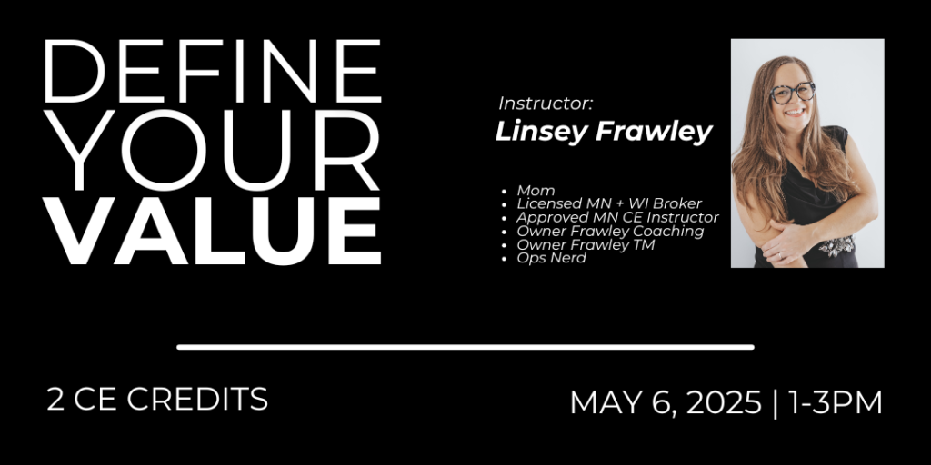 My name is Linsey Frawley and I am a real estate coach and trainer. I’ve been in this industry in some capacity since 1996, where I worked the front desk of a small real estate office in Duluth and I managed the office Polaroid camera. I’m licensed as a Broker in Minnesota and Wisconsin and I own a Transaction Coordination company with my partner. My primary focus is coaching real estate professionals in their life and business, and I love helping people discover their inner strengths and opportunities.